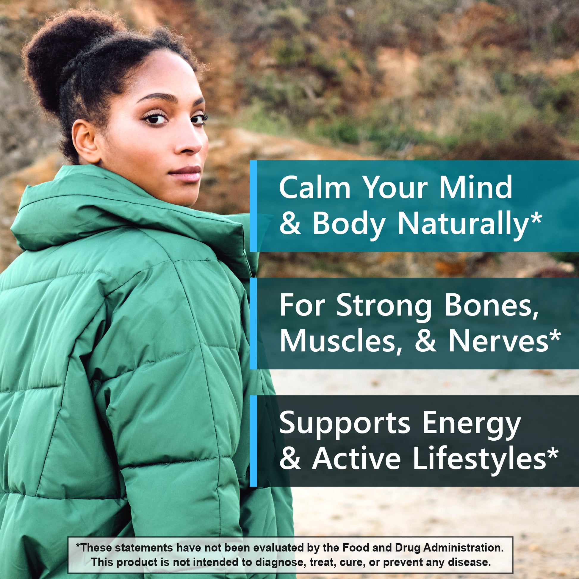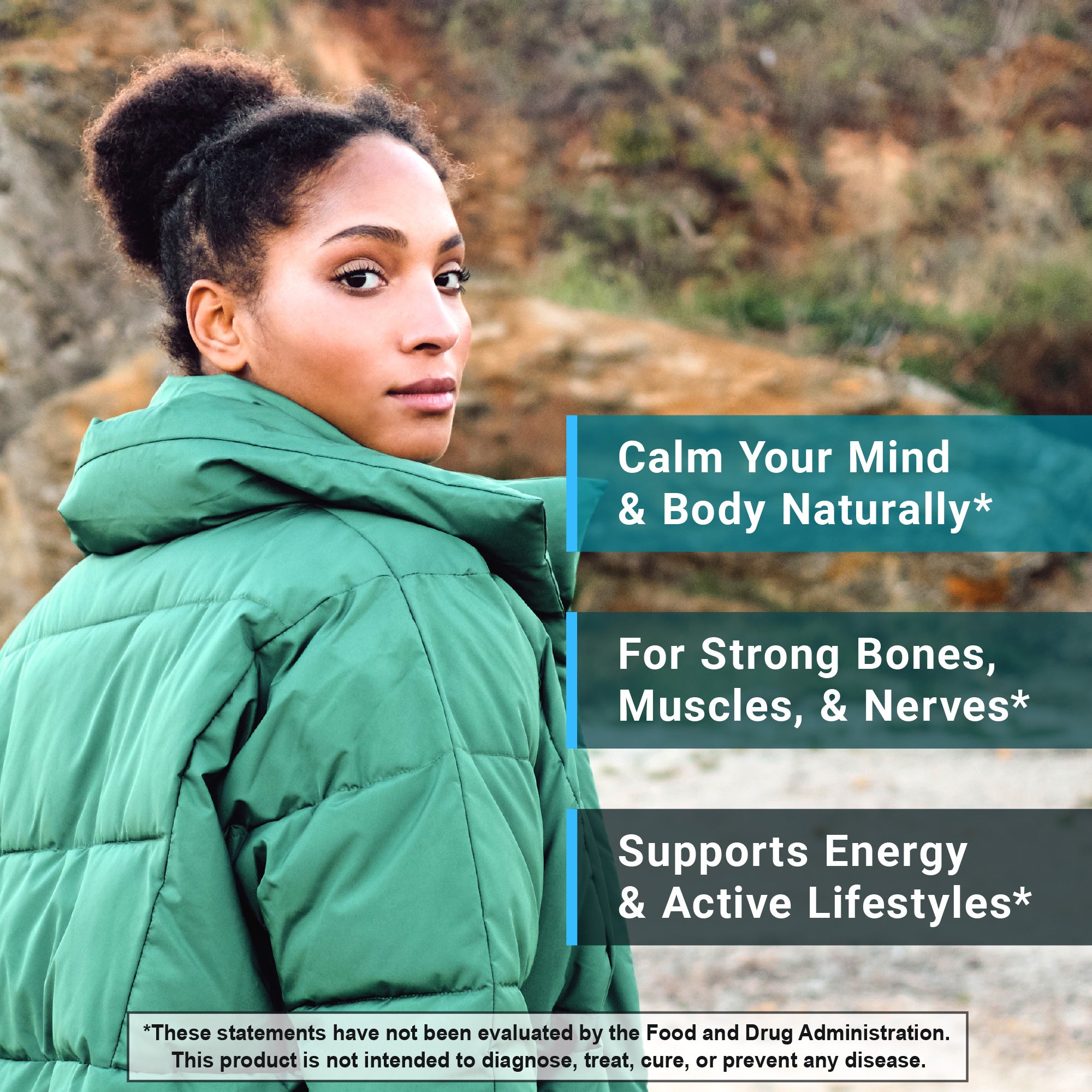 Offers relaxation, supports muscle and bone function, and boosts energy and mood for overall well-being.